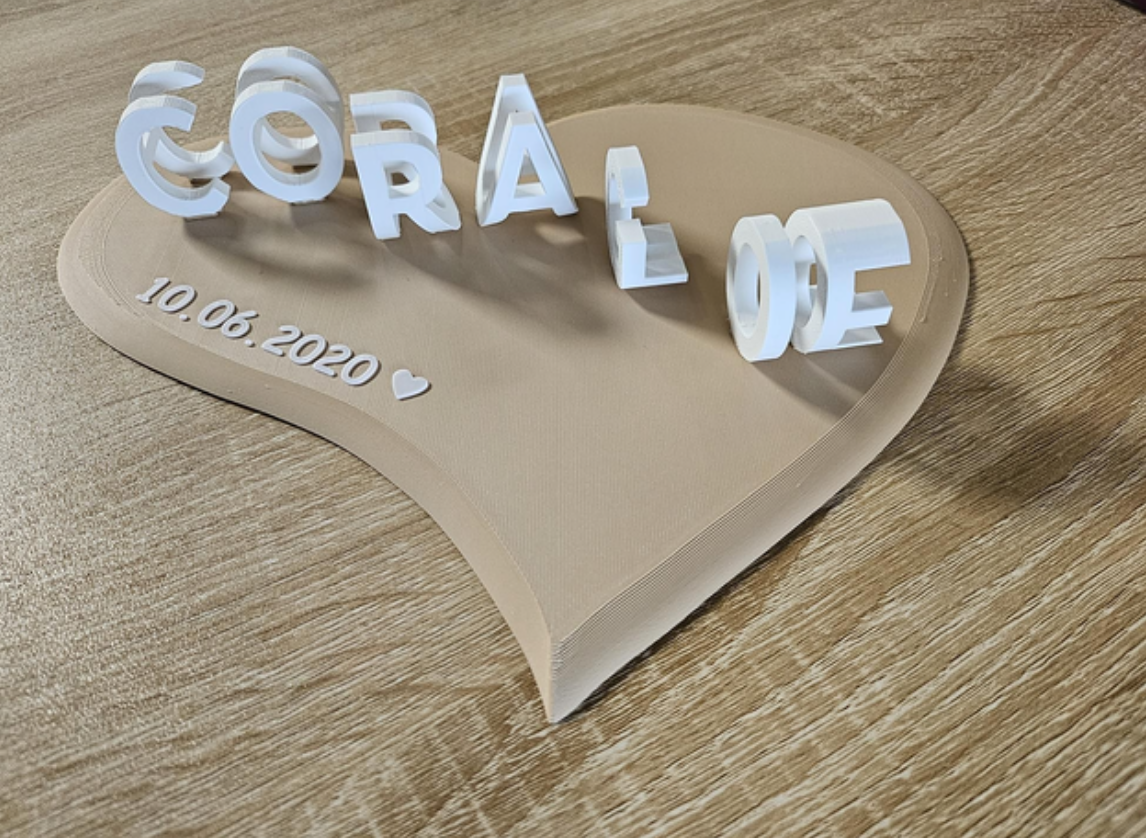 -Prénoms désirés, couleur des lettres - Texte sur le socle, couleur et typographie - Couleur du coeur