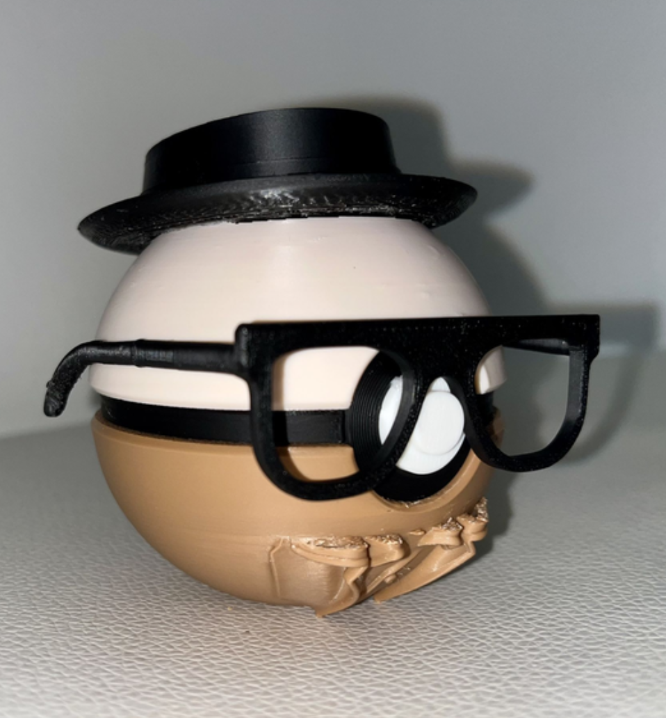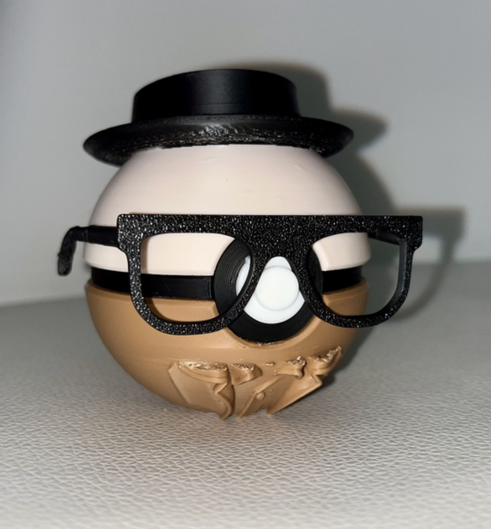 Cette Ball de collection rend hommage au légendaire Walter White, alias Heisenberg. Avec son chapeau noir iconique et ses lunettes carrées, cette Pokéball personnalisée est une véritable pièce de collection pour les fans de la série et de l’univers Pokémon.
